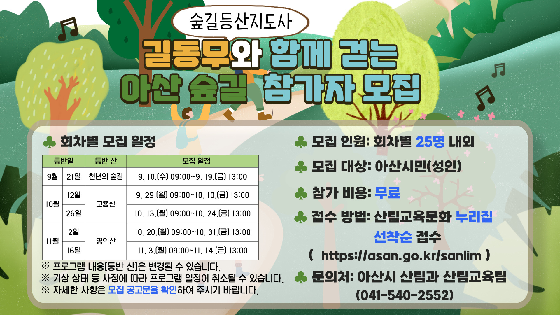 아산시, ‘길동무와 함께 걷는 아산 숲길’ 프로그램 운영