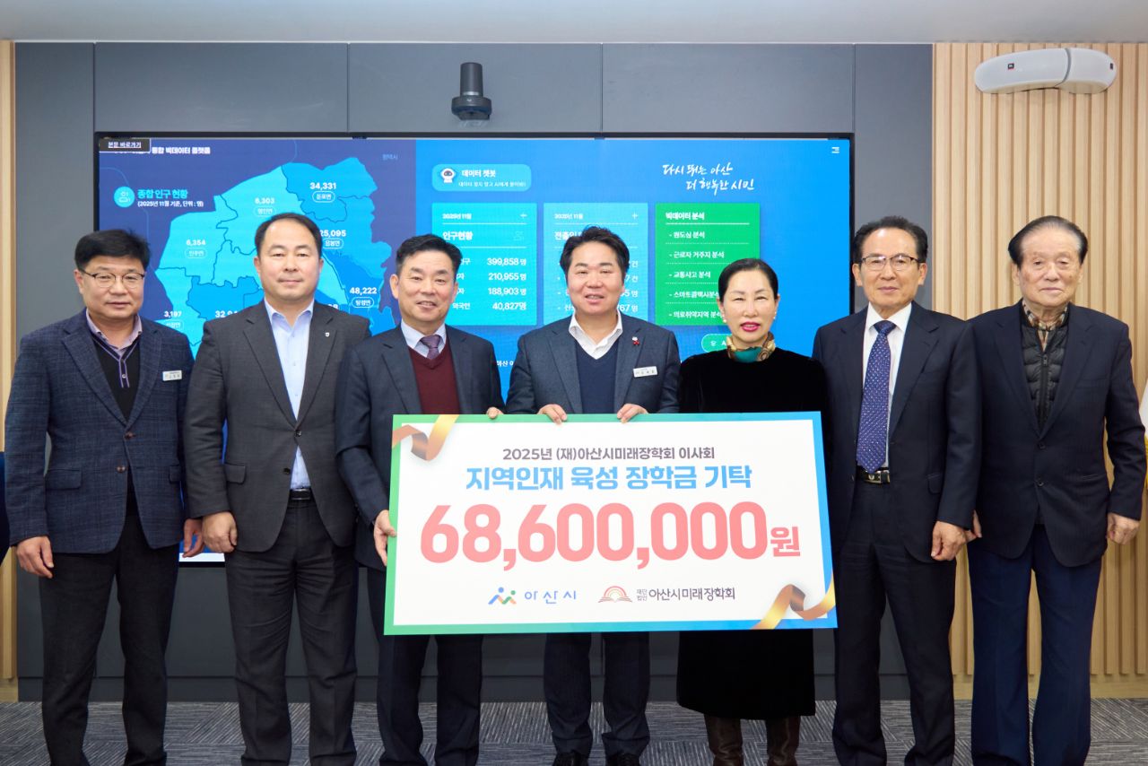 오세현 아산시장은 “아산시 인재 육성과 지역 발전을 위해 장학금을 기탁해 주신 이사님들께 깊이 감사드린다”며 “아산시도 아산시미래장학회와 함께 청소년들의 지속적인 성장을 든든히 뒷받침할 수 있도록 꾸준한 관심과 지원을 이어가겠다”고 말했다.
