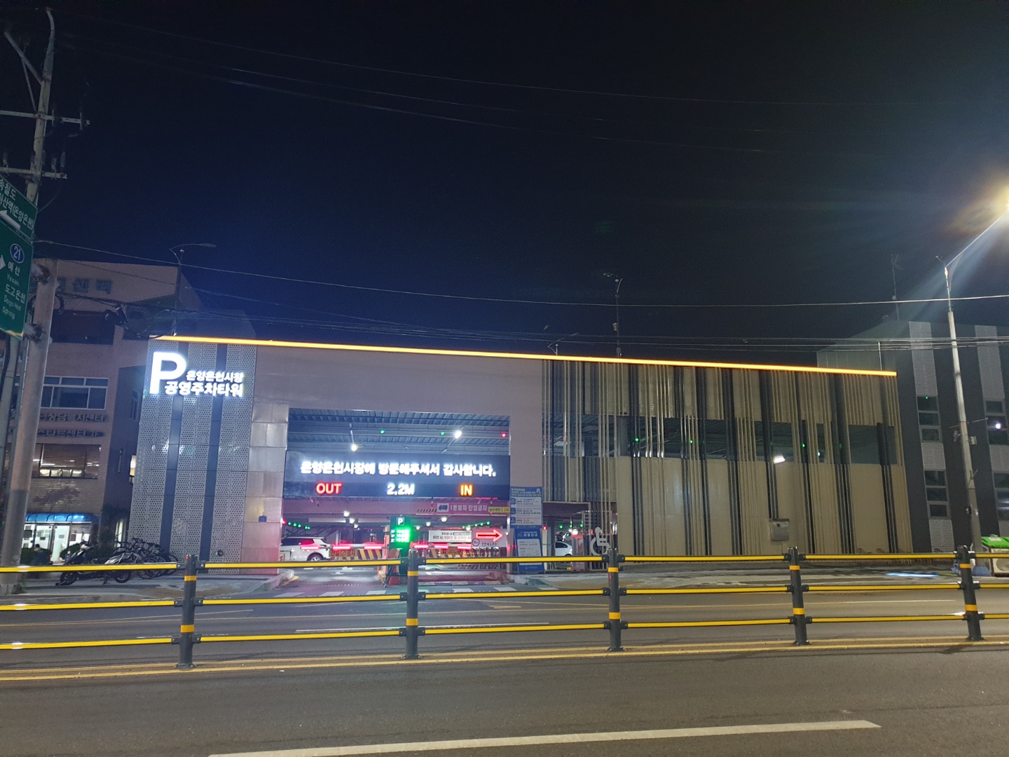 디자인은 은행나무잎의 노란 컬러를 기본으로 하고 금속 타공패널을 부착하여 공영주차장 만의 멋스러움을 구현하였으며, 입구 간판 및 지붕라인에 경관조명을 설치하여 야간에도 원도심을 밝히는 것으로 조성하여 새로운 원도심의 랜드마크로 재탄생하게 된 것이다.